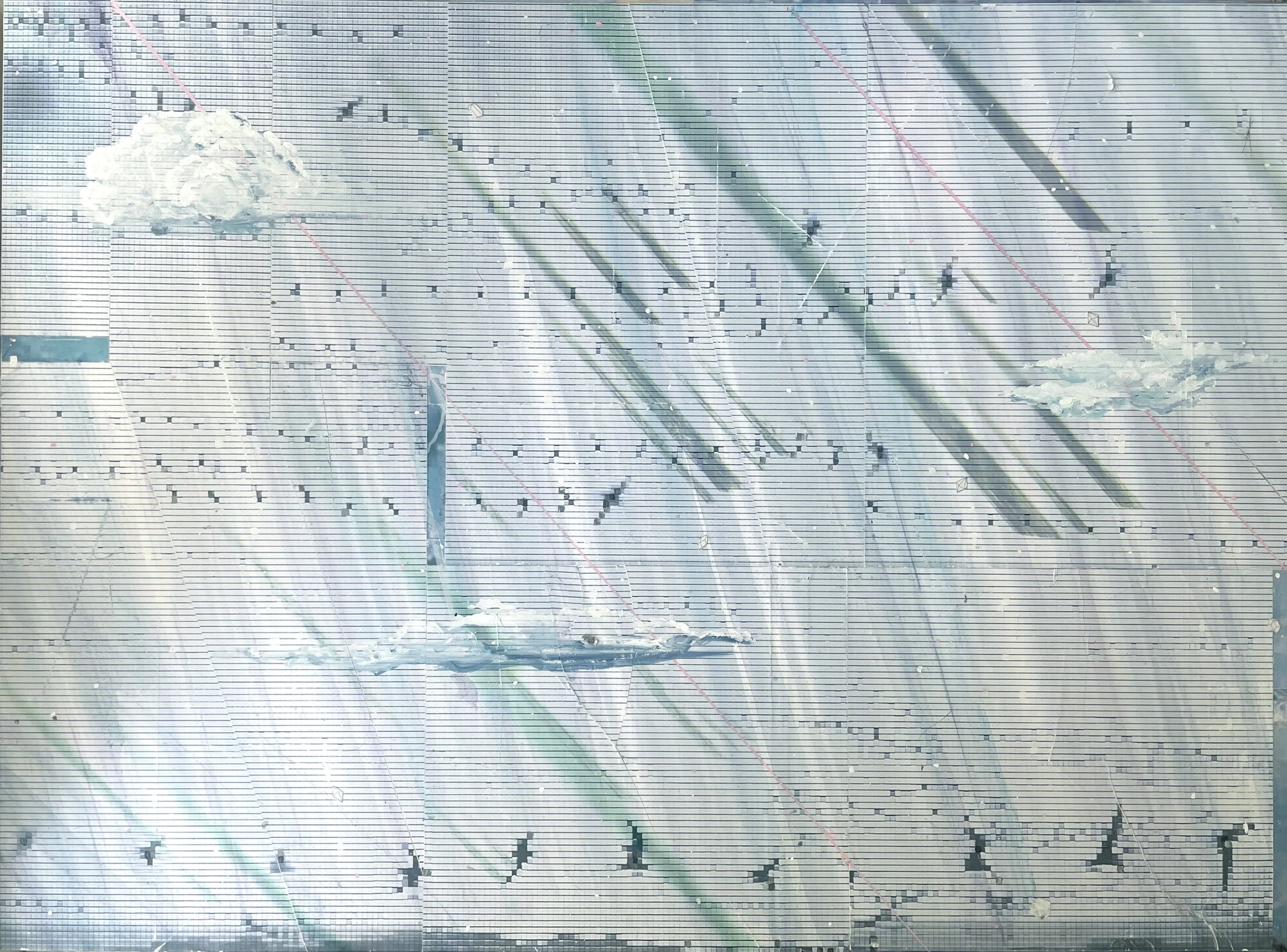 Echo River (Echolocation), 2023-2024, Mixed Media Painting on Wood Panel; 24 x 30 inches